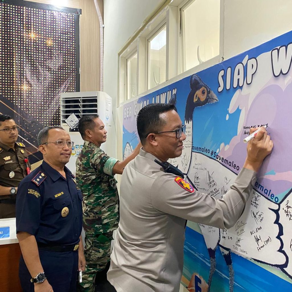 MONONDOK.COM,Luwuk–Kapolres Banggai, AKBP Putu Hendra Binangkari, menuliskan kutipan motivasi dalam pesannya pada spanduk Bea Cukai…