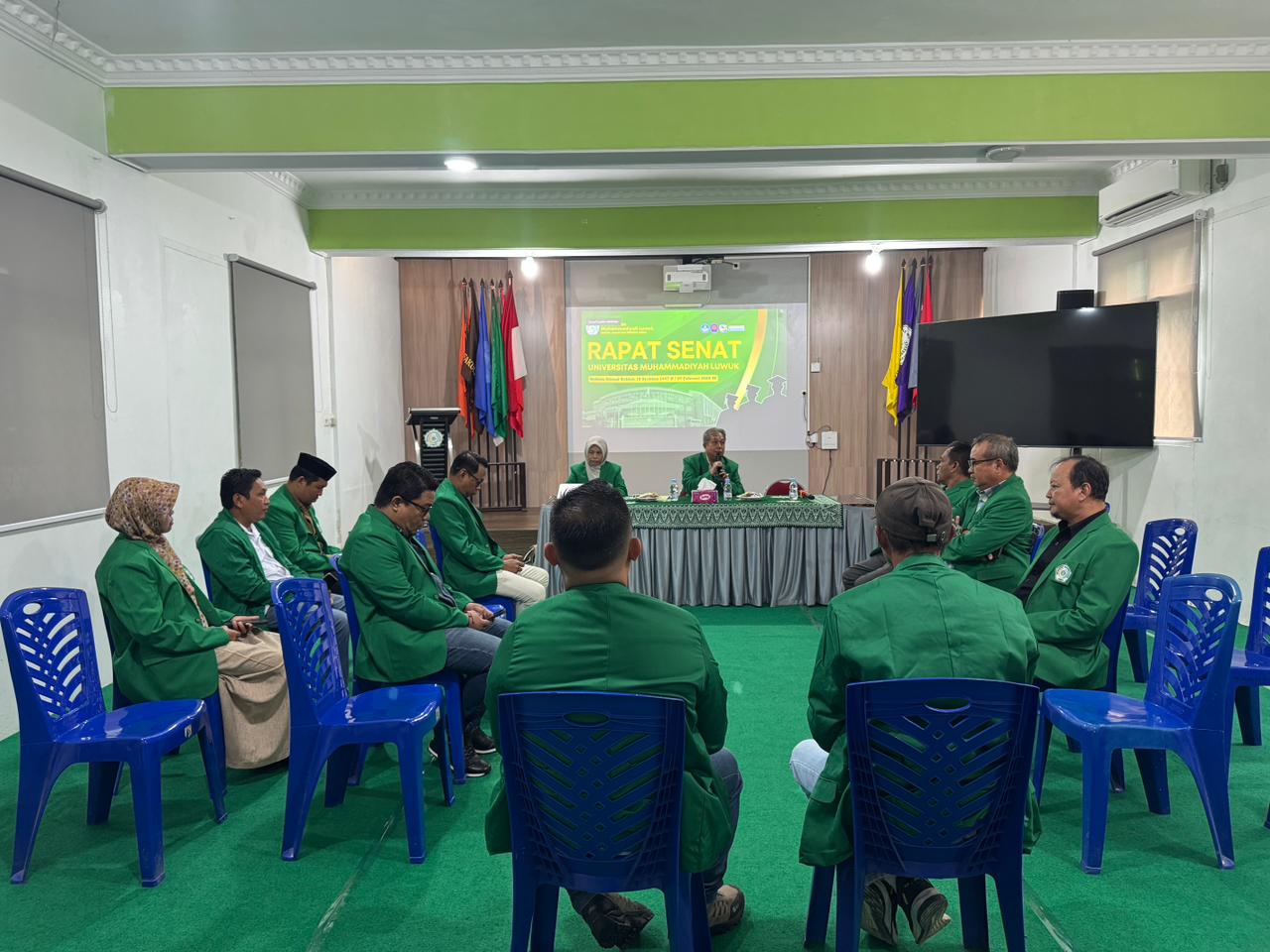 Rapat senat tertutup dipimpin Ketua dan Sekretaris Senat Unismuh Luwuk Banggai, Nasrun Hipan SH,MH dan Dr Nurhidayaa Layoo, di ruang Ahmad Dahlan, pada Sabtu 7 Februari 2026.
