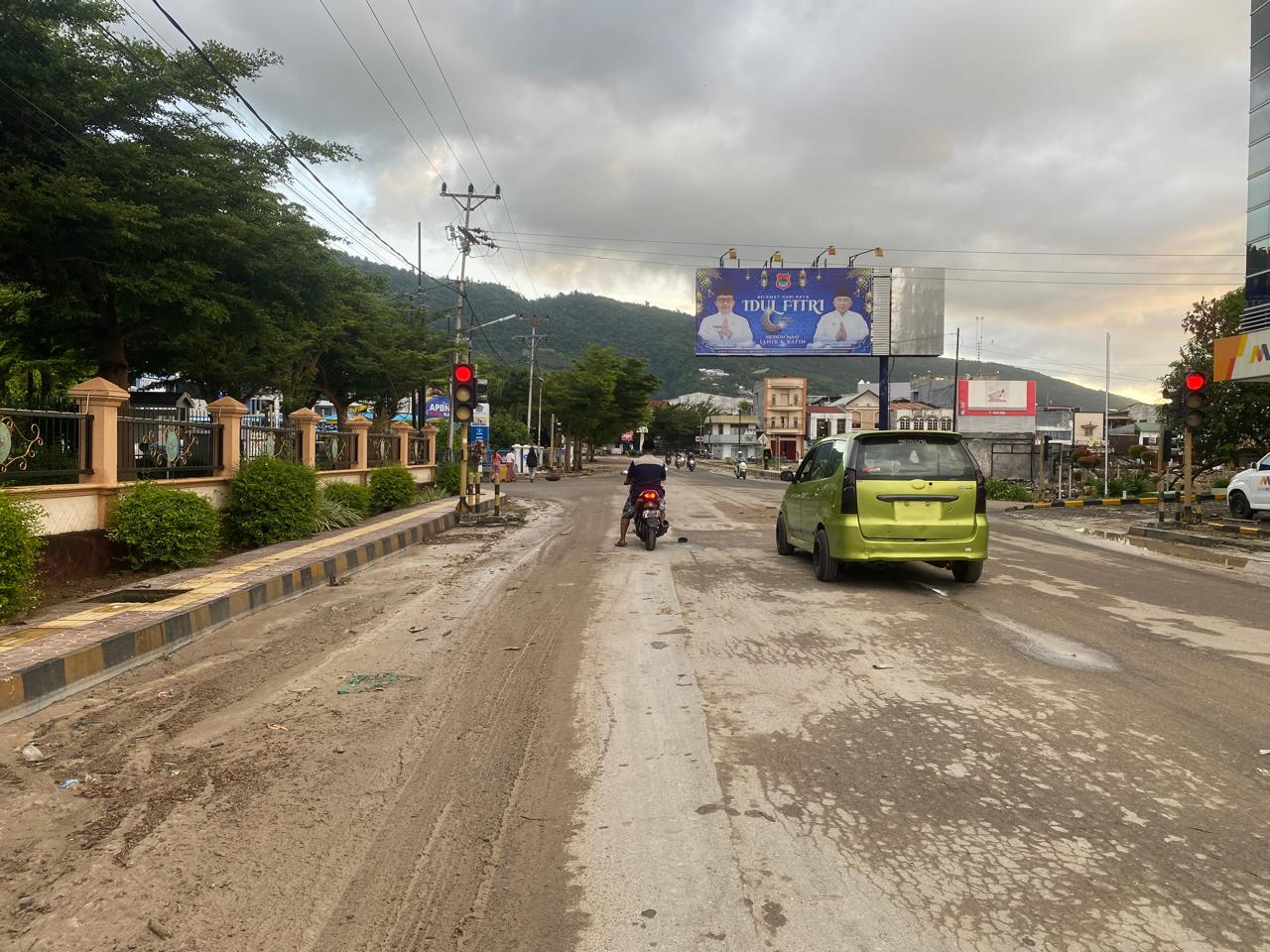 Sementara endapan lumpur di pusat Kota Luwuk, dari simpang empat tugu BNI di depan Bank Mandiri hingga depan Bank BRI dan Kantor Perpustakaan Daerah dikupas dengan alat berat grader.