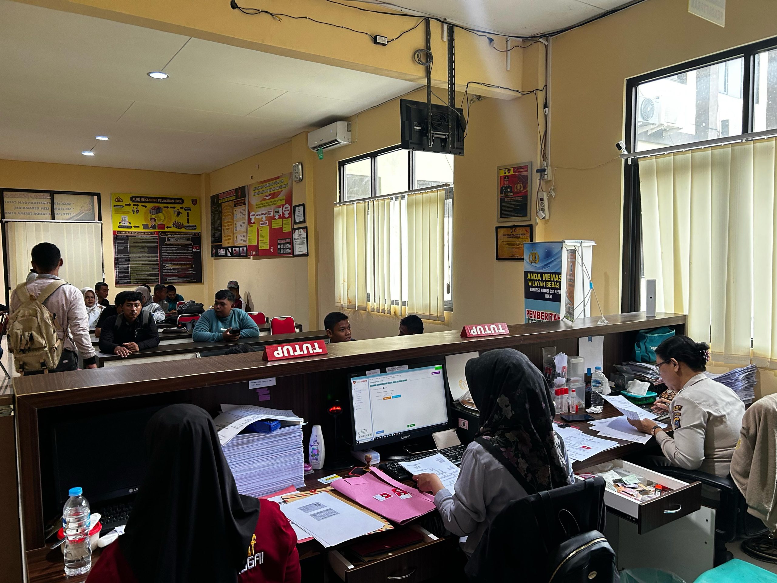 Sejumlah masyarakat mendatangi Polres Banggai dengan membawa persyaratan untuk pembuatan baru maupun perpanjangan SKCK dan SIM, pada Rabu 9 April 2025.
