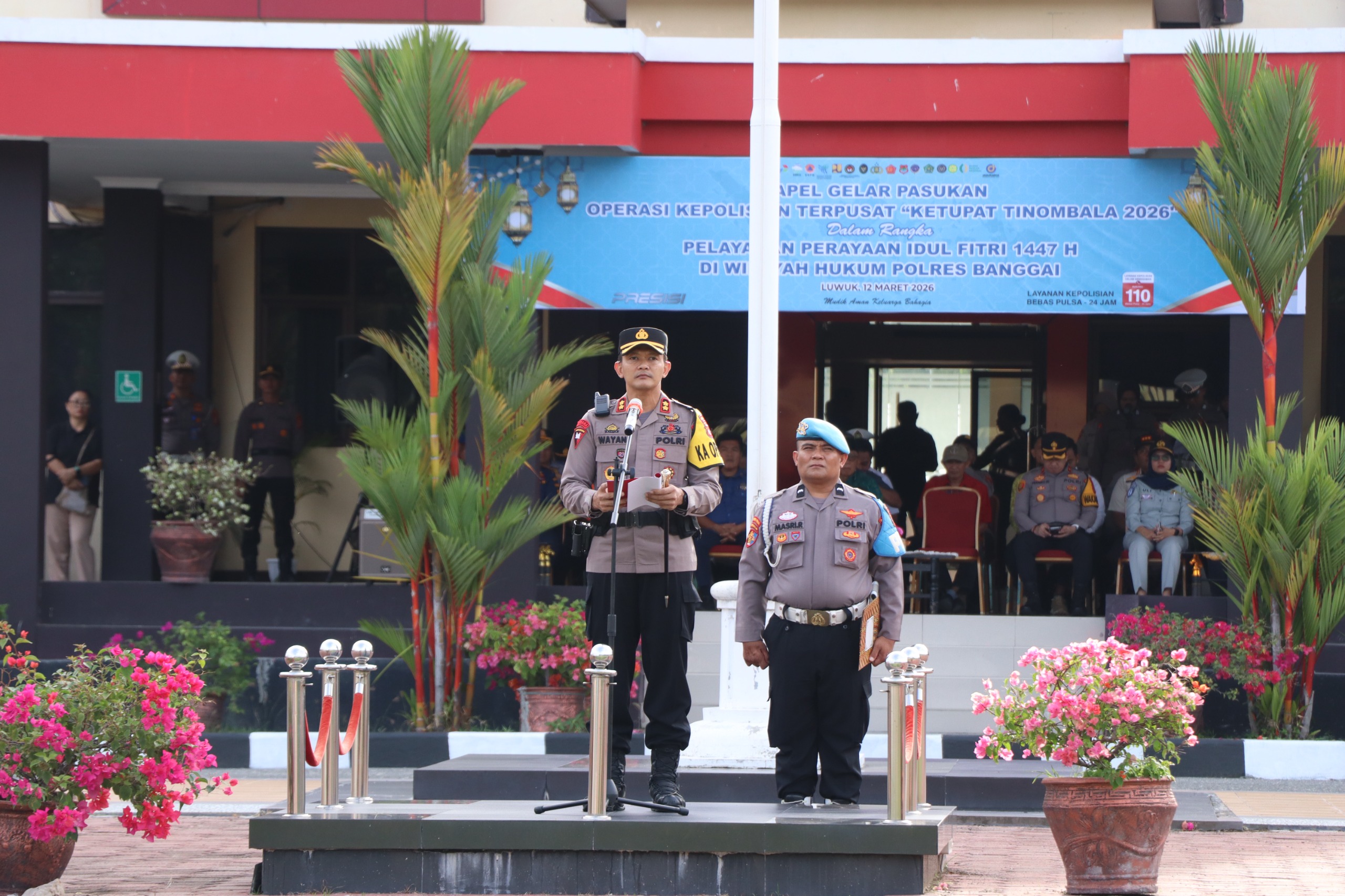 MONONDOK.COM,Luwuk—Polres Banggai melaksanakan Apel Gelar Pasukan Operasi Ketupat Tinombala 2026 di Lapangan Apel Mako Polres Banggai di Luwuk, pada Kamis sore, 12 Maret 2026.