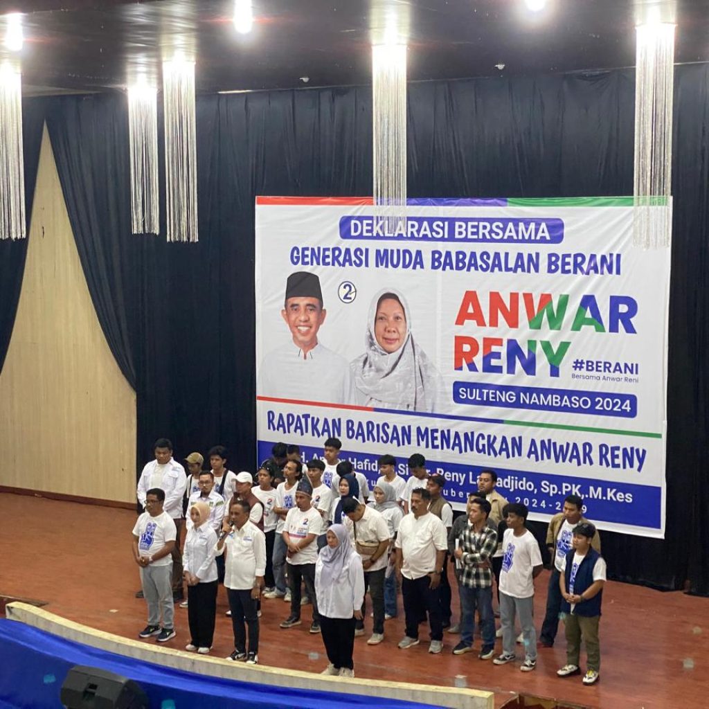Anwar Hafid dan Reni A Lamadjido saat hadir dalam deklarasi bersama Generasi Muda Babasalan Berani di Graha Pemda Banggai pada 24 Oktober 2024, menjelaskan program Sembilan Berani yang mereka usung sebagai calon Gubernur dan Wakil Gubernur Sulteng.