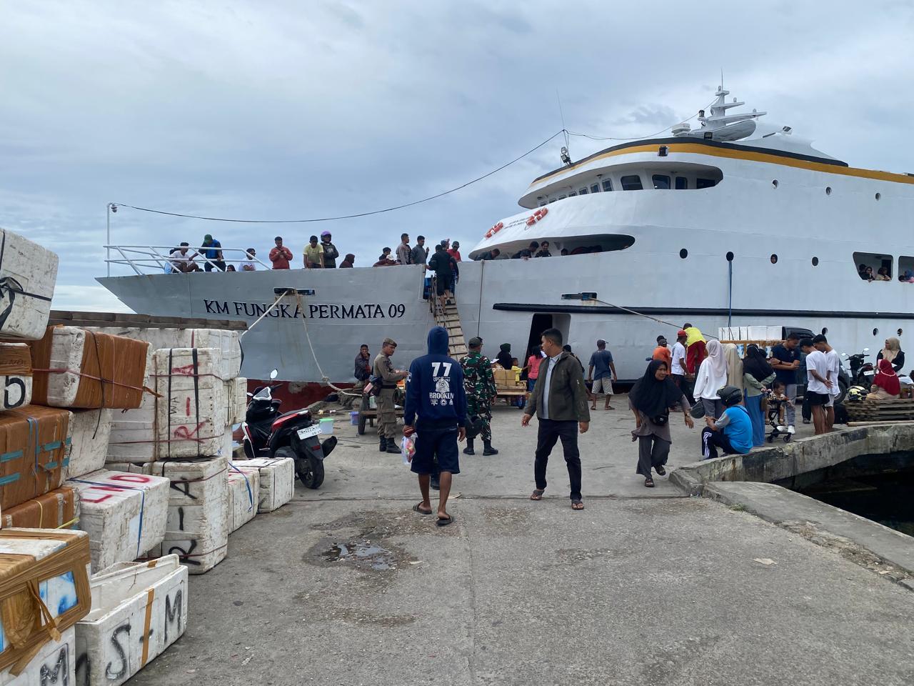 Hari pertama arus balik menggunakan transportasi laut rute pelabuhan Salakan-Luwuk ini terpantau berjalan normal pada Selasa sore, 2 April 2025.